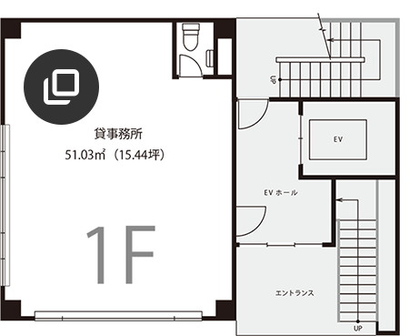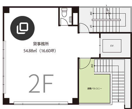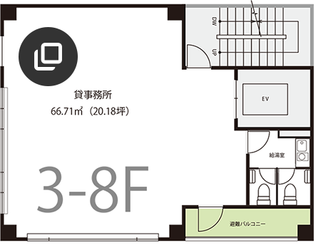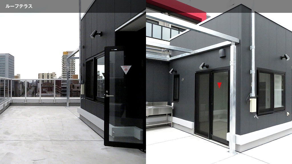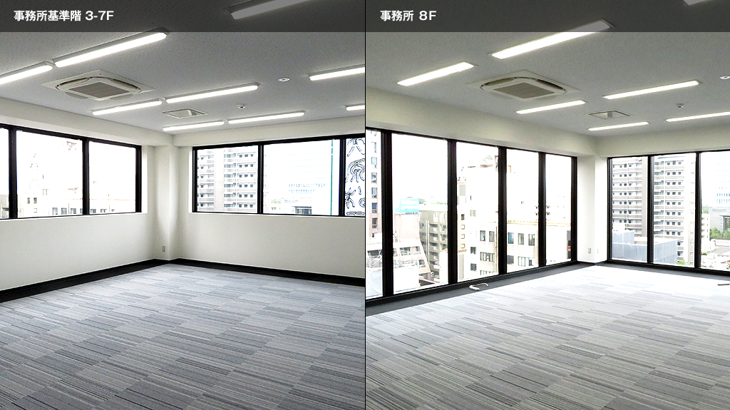 | 用途 | 1-2F:店舗(スケルトン) 3-8F:事務所、店舗 9F:倉庫(専用ルーフテラス) |