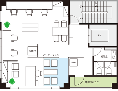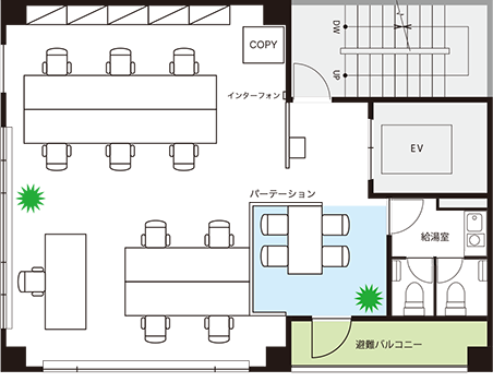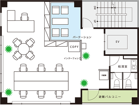 最小限の間仕切りで入居コストを抑制 |